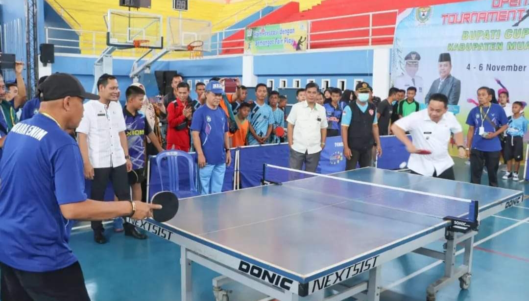 MUARA ENIM I galikabar.com – Pj. Bupati Muara Enim Kurniawan, AP., M.Si., membuka kejuaraan Turnamen Tenis Meja Bupati Cup Tahun 2022 yang berlangsung di GOR Pancasila Muara Enim, Jumat (4/11/2022).