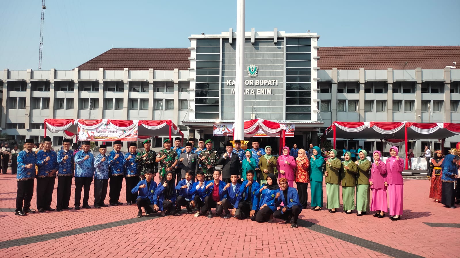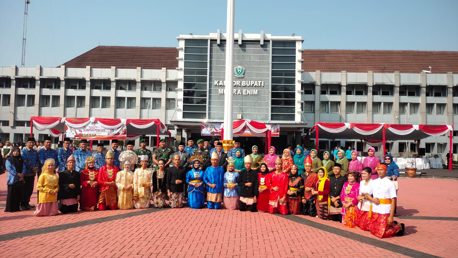 Upacara yang digelar di Halaman Kantor Pemkab Muara Enim, Sabtu (28/10/2023) tersebut berlangsung sederhana dan khidmat.