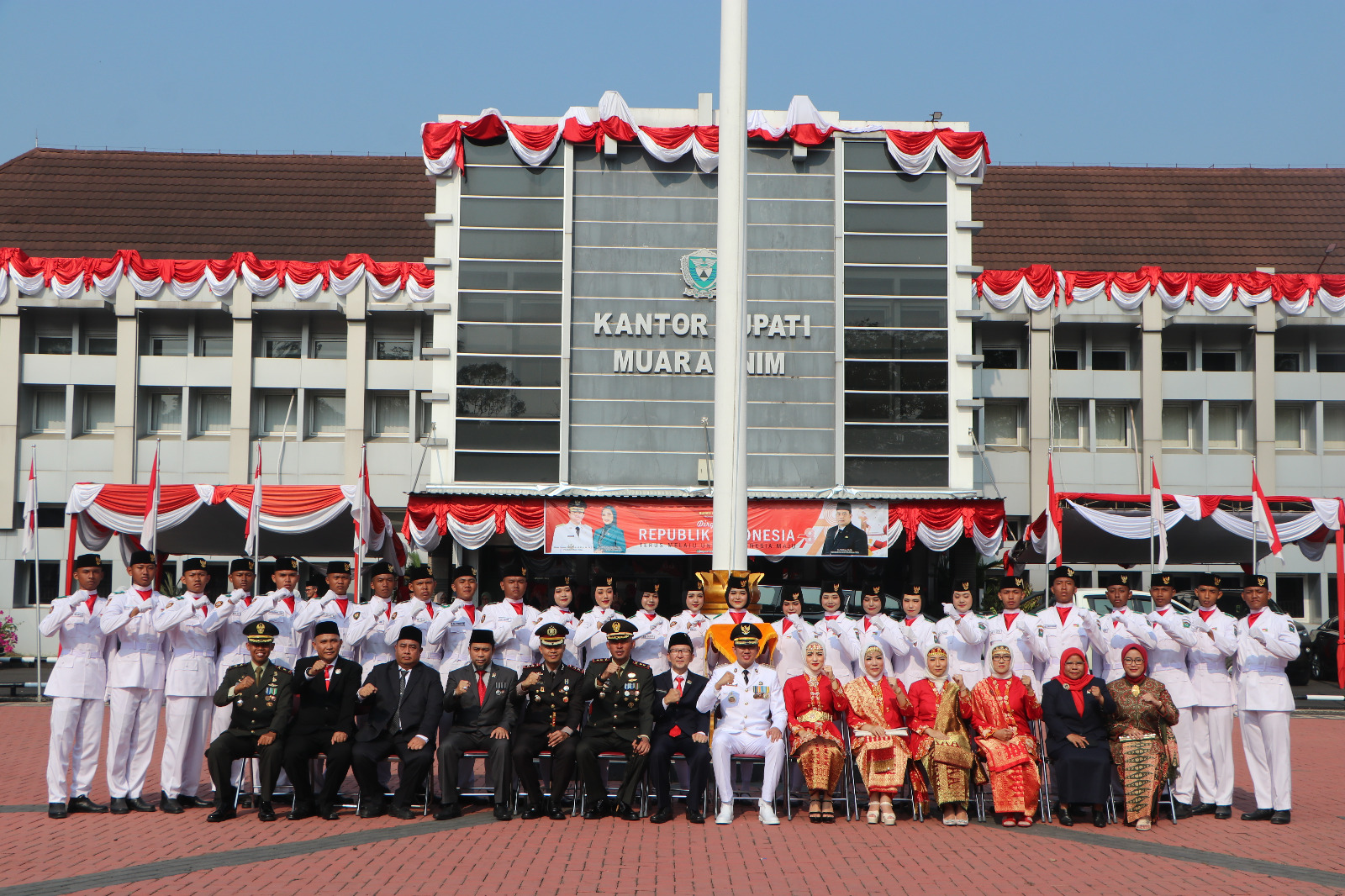 Upacara yang berlangsung sederhana dan khidmat tersebut, dipusatkan di Lapangan Merdeka Muara Enim, Kamis (17/08/2023).