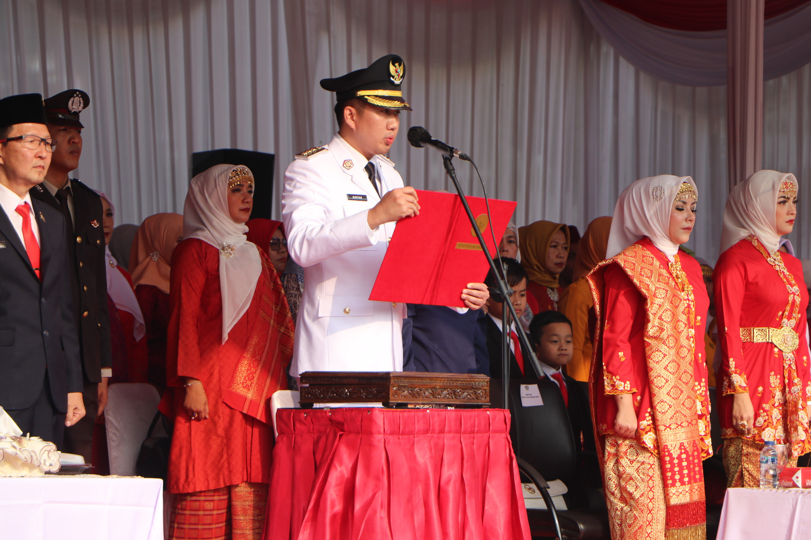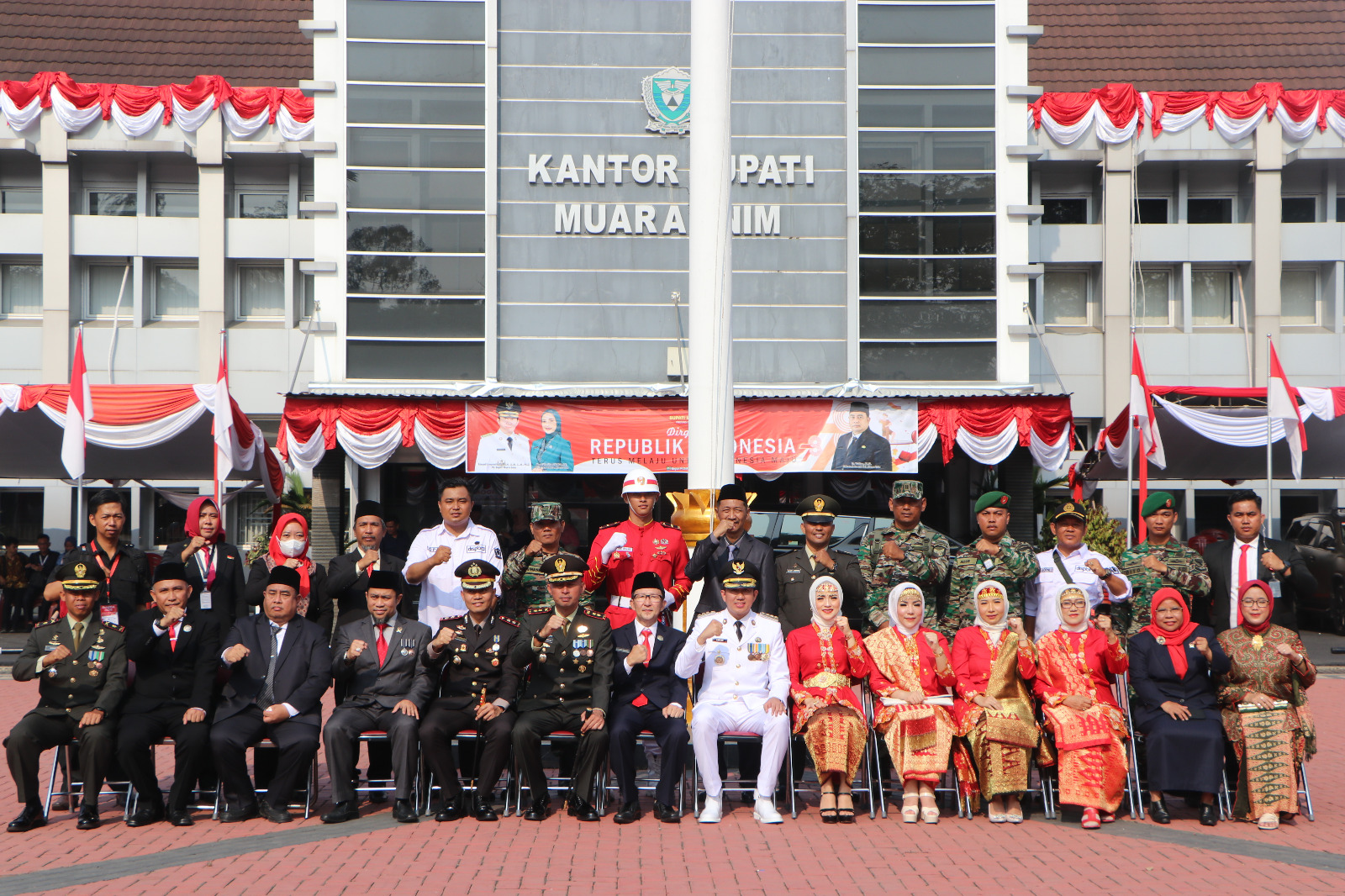 Pada kesempatan itu, Plt Bupati Muara Enim membacakan detik-detik proklamasi Kemerdekaan Republik Indonesia ke-78. Sedangkan Ketua DPRD Muara Enim Liono Basuki didaulat membacakan Pembukaan Undang – Undang Dasar (UUD 1945).