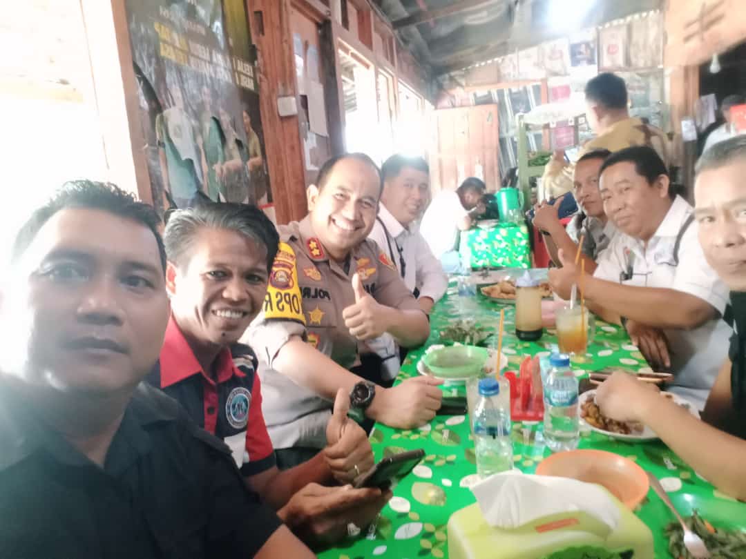 Foto : Tampak Kapolres OKI Sarapan di Warteg Bersama Rekan Media